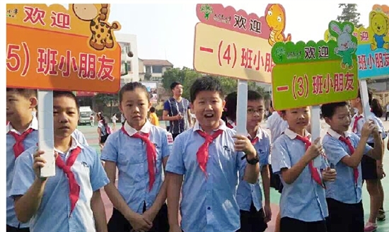 8日早晨7时左右,大司巷小学高年级的同学们举着班级牌站在大门口,牵起了新生们的手,欢迎他们到来。