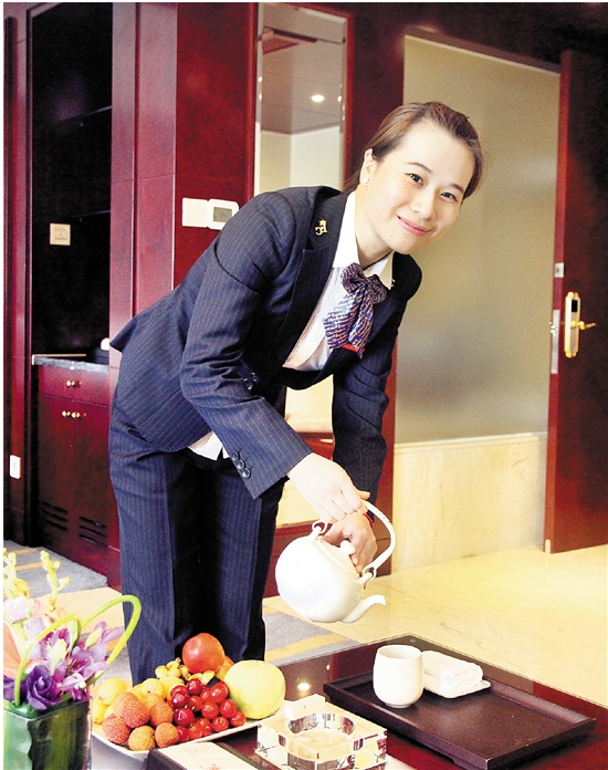 服务细节同样不马虎。比如在等待客人就餐过程中,为保持餐巾的温度和卫生,宾馆服务员会事先用保鲜膜包住餐巾,以便客人随时使用,随时体验到舒适。