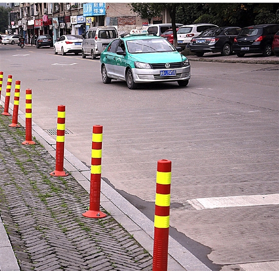 24日,记者从市城管部门获悉,为改变一些司机将车辆停在人行道上的现状,城管部门在城区一些路段的人行道增设了隔离桩,把人行道还给行人。