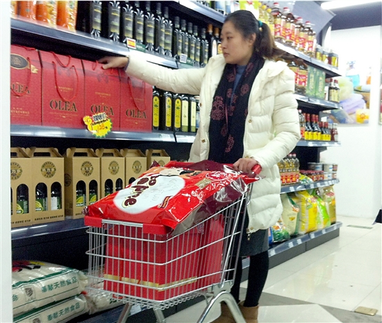 在该店转了一圈,记者留意到,货架上的不少进口零食、食品油、牛奶已贴上了促销标签,优惠后的价格极具竞争力,好比一款奥地利产的橄榄油,2.5升装只需59.8元,其他意大利、乌克兰等地产的食用油价格也非常优惠。“我们还将油、牛奶、饼干等进口食品进行组合包装,给出套餐年货价。”姚建益说。