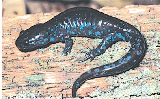 蓝点钝口螈:体型中等。头部宽大,眼小。有明显的肋间沟。穴居,不好动,终生具外鳃,成体细长,四肢细弱,尾褶较为厚实。皮肤光滑无鳞,表皮角质层薄并定期蜕皮。肢、尾残损后可再生。