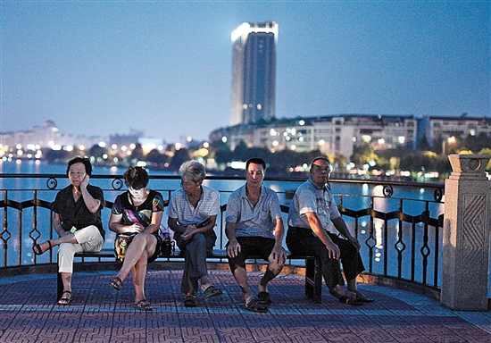 入秋以来,我市依然持续高温。19日傍晚,记者在高镇桥上看到,许多市民早早吃过晚饭,来到桥上纳凉。