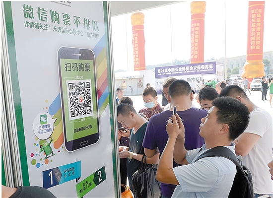 26日,微信购票支付系统正式亮相国际会展中心,这也是博览会首次使用自助售票系统,购买一张门票只需要30元,不仅大大节省了排队买票的时间,还比正常票价便宜5元。
