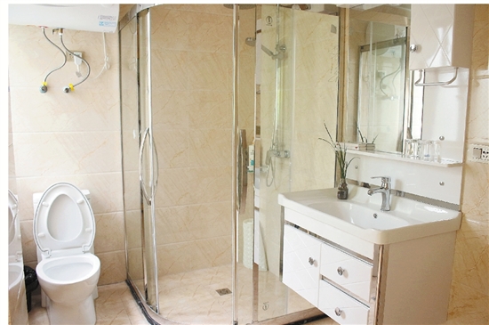 “这房子是我造的,但装修都是我两个儿子设计的,8月初开始装修,9月份完工。得知村里要安排中青班干部住我家,怕他们不满意,我特意叫儿子朋友和亲戚来试住了几次,让他们给我提意见。”陈家权介绍,他自己与妻子住在隔壁的楼房里,这里是分给两个儿子的产业,按楼梯为界线一人一半,现在4、5楼没有进行装修,只有2、3楼两层作为民宿房间装修开放,共有12个房间,20个床位。