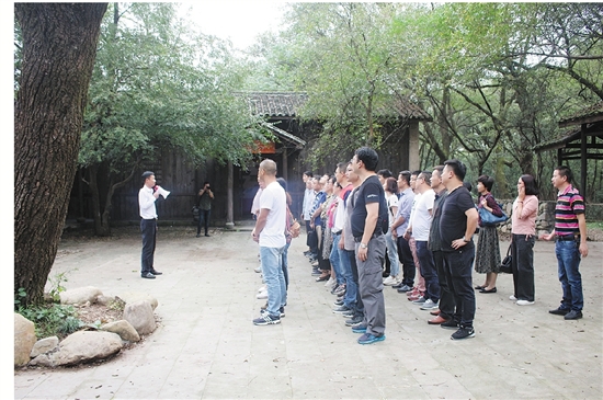 学员们在西溪镇党群服务中心外听介绍