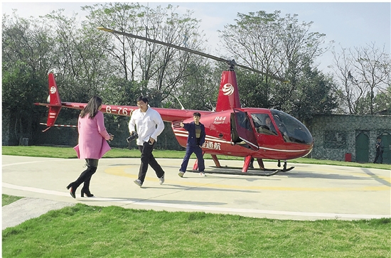 3日,杭州永康商会一行30多人来到浩恒通航,乘坐直升机空中看家乡的新面貌。