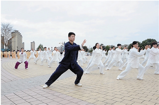 杨式太极拳在我市历史久,影响力大,练习者多。陈式太极拳、忽雷太极拳虽然传入我市时间不长,但发展很快。三大太极拳流派各展绝招,在市体育场上演了一场太极盛宴。
