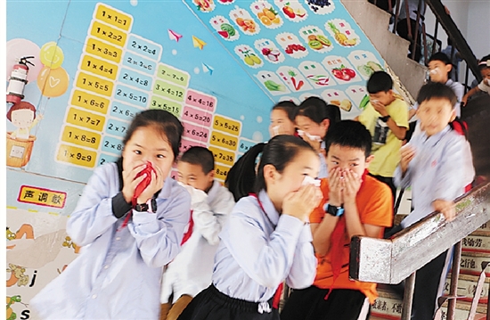 本报讯 “这是怎么回事,一大群孩子手捂着毛巾往外跑,教学楼还有烟往外冒。”16日上午9时许,从华丰菜场买菜回家的徐大妈经过实验学校门口时发现,教育楼里还有孩子不停地往外跑。她的心立刻提了上来,她的外孙就在这所学校就读。