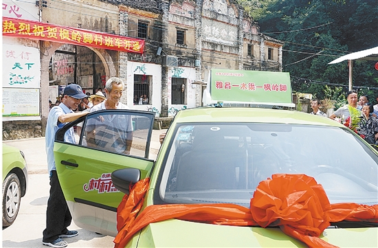 10时许,记者乘坐定制班车到达枫岭脚村。村民们早已准备好鲜花、锣鼓、矿泉水在村口等候。一见到定制班车,91岁的村民陈苏金兴奋地说:“真没想到,我有生之年还能在家门口乘上公交车。以前,我去雅吕得走一个多小时的路,以后我可以乘公交出行啦,真好!”