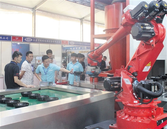 现场,武义的厨具企业负责人陈斌对该设备表现出浓厚兴趣。他表示,目前,企业正在实施“机器换人”改造,这条流水线的改造费用仅是之前他曾看中的德国生产线的四分之一。