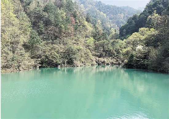 上山时路过黄坑口水库,一潭碧色不禁令人神清气爽,山麓青翠叠嶂,一泻而下的水流令人心醉,这是独松村的饮用水源。
