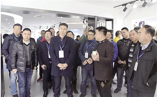 在飞剑科技公司的展厅,考察团一行看到,该公司以新时代、新未来为主题的未来感展馆内摆放着琳琅满目的水杯、保温杯等产品,十分夺人眼球。而最吸引考察团注意的当属4月推出的新产品:晶钻科技打造的钛晶系列杯壶。