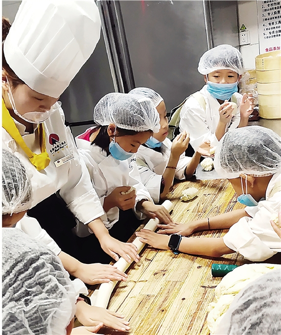 在这里,我们这一组小记者做了一道酒店的名菜——特仑苏馒头。初一闻,一股奶香沁人心脾,一口咬下去,甜甜的,却不会腻,让人回味无穷。