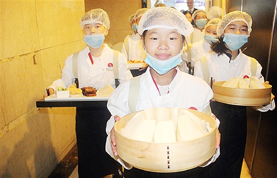 做完馒头,小记者来到餐厅,接下来是提问和品尝环节。很快,一道道香气四溢的菜肴摆上了桌。小记者踊跃提问,然后品尝了自己的劳动成果,感觉特别的美味。