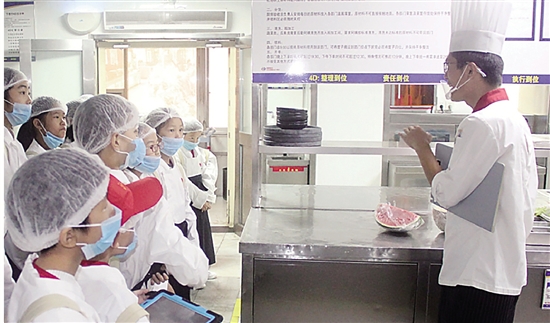 小记者看到,厨房的地面干干净净,没有一丝异味,让人神清气爽。为什么叫4D厨房呢?厨房负责人解释,4D是指整理到位、责任到位、培训到位和执行到位,这样厨房才能保持干净整洁。