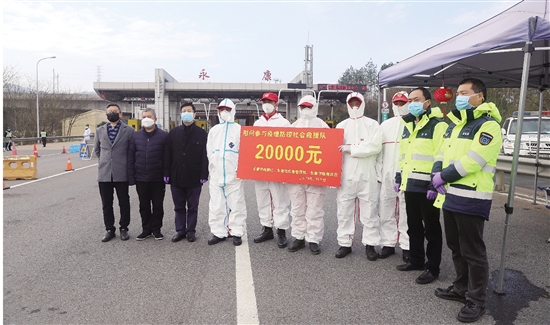 10日,永康农商银行会同市应急管理局、市慈善总会,看望慰问了正奋战在抗击新冠肺炎疫情一线的红十字会、千禧、民安、先锋、雄鹰等5支社会救援队,并为每支救援队送上2万元慰问金。