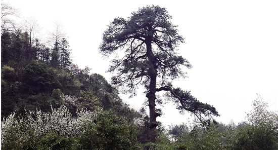 陈象明在路上曾告诉记者,在山后胡村,有一样东西,抬眼就能看到。刚一进村,记者果然一眼就看到了远处一棵高耸挺立的松树。“这是永康第一古松,树龄有720多年了。”在巨大的松树下,记者等三个人合抱才围成了一个圈。