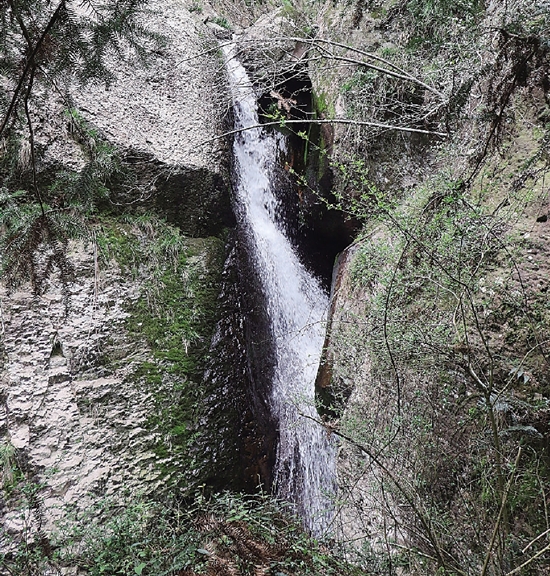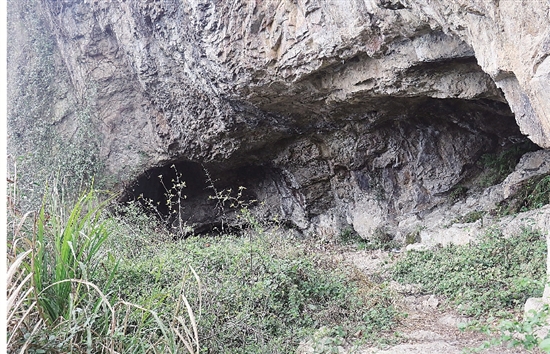 且行且休息,花费了近30分钟,记者才来到白云岩洞附近。白云岩洞,有人也称为白灵岩洞。山洞朝南,左右较宽,进深较浅,洞内还有石凳、石床、石臼、石井、石水槽,常有爬山爱好者在这里歇息。