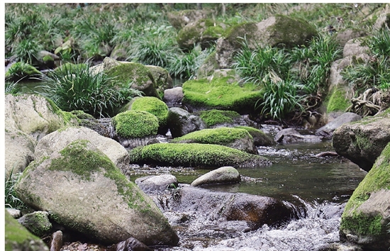 溯溪而上,道路并不比山路好走,不时还要踩上溪中石头。“这块石头特别滑,要小心。哎呀……”刚提醒完别人的记者,却一只脚滑到了水中,湿透了整只鞋,惹得众人哈哈大笑。
