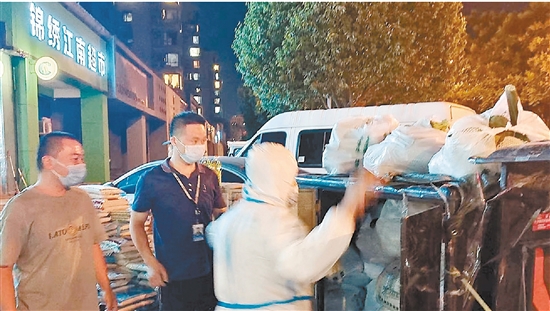9月10日晚,由永康邮政管理局牵头组建的永康顺丰志愿者小分队迅速投入锦绣江南小区保供物资配发工作中。