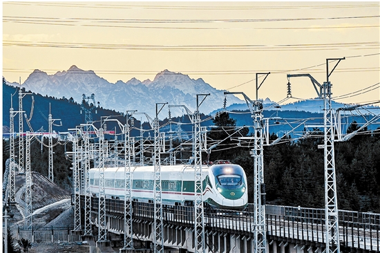 11月26日,列车行驶在丽香铁路线上。当日,丽江至香格里拉铁路开通运营,两地间最快1小时18分可达,昆明经大理、丽江可直达香格里拉。
