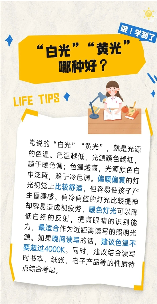 马上要开学了!即将结束快乐暑假生活的学生们需要什么样的读书学习“搭子”?灯具必不可少“护眼灯”真的“护眼”吗?什么样的台灯才是最适合读写使用的?黄光还是白光照度、显色指数、频闪……怎么选?快来记笔记了!