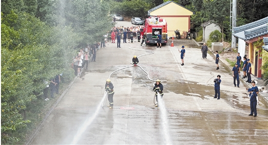 7月23日,“百优争创 除险保安”金华市第三届宗教活动场所消防技能大比武在南都禅寺举行,来自金华各地的10支宗教活动场所代表队参赛。经过激烈角逐,永康队获得集体项目一等奖。 融媒记者 胡东来 摄