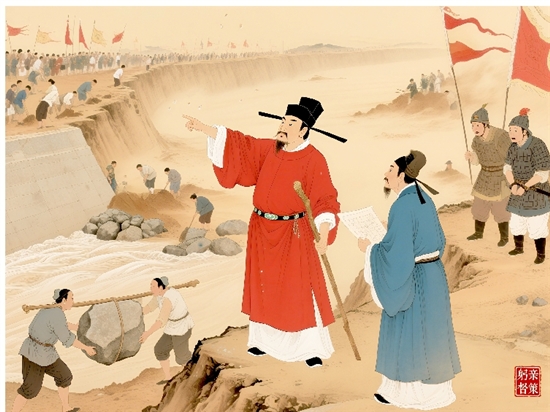 经勘查,胡则颁布第一道知州令:“举城治水,务绝水患!”有二大策略:一是修钱塘长堤以挡江潮;二是浚城内运河以畅水脉。他日夜操劳,严惩贪腐,还经常亲临工地与役夫一起劳作。百姓深感胡则的赤诚,踊跃参加治水。大家肩扛巨石筑堤,手掘淤泥通河,昼夜不息。不久,巍然长堤如巨龙卧波,深阔运河像玉带环城。