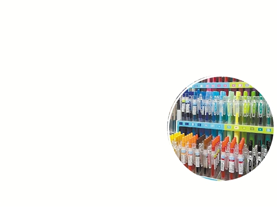 王先生指着货架上的商品说:“这款带有动画IP的多功能笔,很受小学生欢迎,而中学生更多会选择价格较高、书写体验更好的进口品牌水笔。”