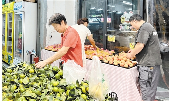 “现在这个时节最好,夏季和秋季的水果都能买到,选择特别多,我今天打算买点阳光玫瑰和柚子。”正在选购水果的市民袁敏珍向记者透露了一个挑柚子的小技巧,“挑柚子不能只看大小,可以拿同样大小的柚子掂一掂,选择比较重的那个,通常水分会更充足。”