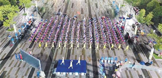9月19日夜,在总部中心五湖广场,数百名队员以一场活力四射的集体健身操庆祝团队成立五周年。据悉,这个健身团队最初由十余名健身爱好者自发组成。五年间,该团队发展出了五支分队,成员达数百人,成为我市最具影响力的健身团体之一。 融媒记者 卢斌 摄