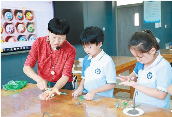 9月24日,金都小学美术教室内传出阵阵欢笑声,20多名学生在非遗传承人的指导下,制作中秋主题泥塑,用指尖温度塑造别样中秋记忆。 融媒记者 卢斌 摄