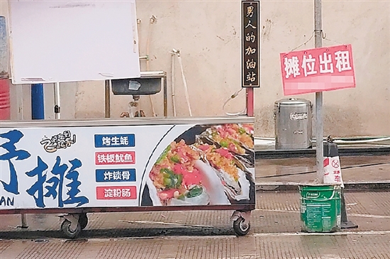 在苏溪村,记者看到道路两侧售卖水果、烧烤等的摊位错落分布。有的摊位直接摆在划定的公共停车位上,旁边还停着用于经营的车辆,公共停车位被挤占得所剩无几。在一处还未营业的小吃摊旁,立着 “摊位出租”的红色招牌,十分醒目。