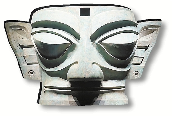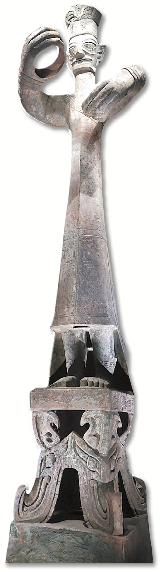 这件器物还映射出了三星堆文化与良渚文化相似的宇宙观。玉琮是良渚人沟通天地的法器,内圆外方的造型象征着“天圆地方”的宇宙观,中心的穿孔有“贯通天地”的深刻含义,是人和神来往的心灵通道。而三星堆神树是古蜀人心中沟通天地、连接人神的登天之梯。这不禁引人深思:时间上,两种文化相差了2000多年,距离上,两地相隔1500公里,这样相似的精神底色是如何形成的?