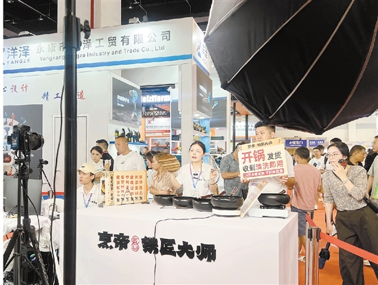 “0涂层,真铁锅,现在下单仅需两位数……”在浙江烹帝厨具有限公司(以下简称“烹帝公司”)的展位上,一名主播正对着手机屏幕热情地介绍一款铁锅,在她面前的大屏幕上,实时滚动的成交额数据不断攀升。
