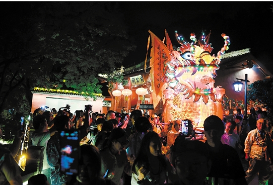 10月18日晚,龙腾方岩活动震撼亮相。流光溢彩的板凳龙,让游客尽情领略民间传统文化的魅力。龙腾方岩活动不仅是一场精彩的视觉盛宴,更是对永康传统文化的传承与弘扬。 融媒记者 胡华超 杨成栋 摄