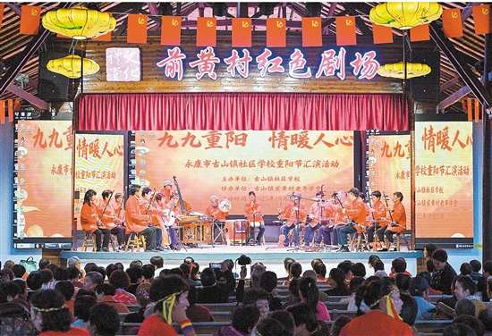 10月23日上午,古山镇社区学校在前黄村举办“九九重阳 情暖人心”文艺汇演活动。老年朋友们自编自导自演歌舞、婺剧等22个节目,为观众呈现了一场充满温情的文化盛宴。