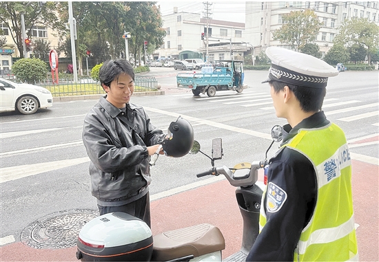 除了机动车道上的疏导,对电动自行车的安全劝导也是协管员和志愿者的工作重点。“师傅,请把头盔戴好!”“电动自行车不能载人,太危险了!”看到违规的骑行者,协管员和志愿者立刻上前,温和而坚定地进行提醒与教育。面对劝导,骑行者也积极配合。一名年轻人不好意思地说:“赶时间忘了,下次一定记得,安全是第一位的。”