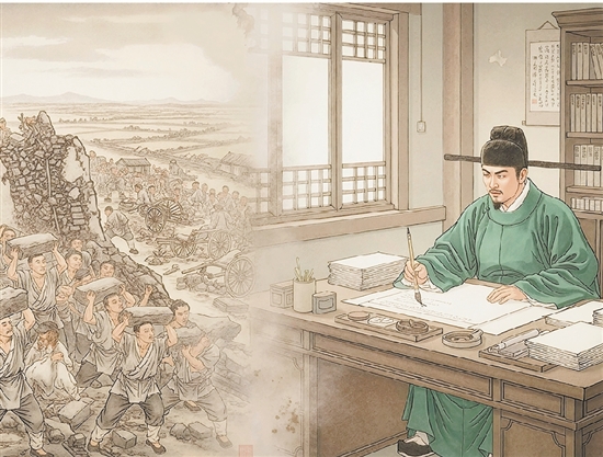 全诗以“解民倒悬”为主线,首联“役夫愁”“征徭动九州”写民生疾苦,颔联“抗疏停壁垒”显担当,颈联“归农暖”“柳榆秋”绘政策实效,尾联“民本丹心”升华主旨。从直言进谏到生态护边,展现胡则“以民为本”的理念与智慧。