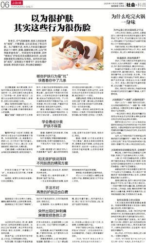 秋冬天,空气湿度骤降,很多人的皮肤率先“喊渴”,干燥紧绷、泛红起皮成了常见问题。为了缓解不适,有些人开始盲目叠加护肤品——精华、面霜、面膜轮番上阵,以为“用得越多越有效”。但皮肤科专家提醒,这种“堆砌式”护肤反而会加重肌肤负担,成为脸部敏感甚至过敏的头号诱因。如何科学为肌肤“减负”,安稳度过干燥季节?这份专属护肤指南,帮你避开误区,养出稳定健康肌!