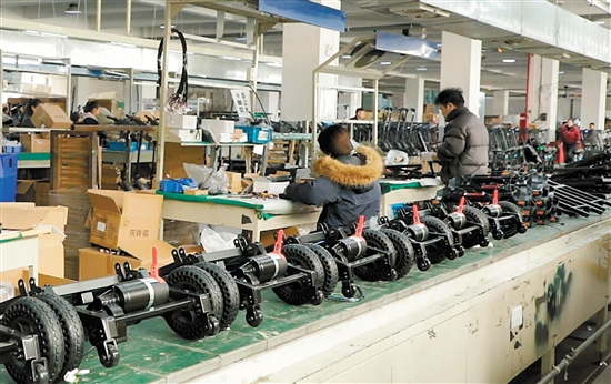 工人在装配老年代步车