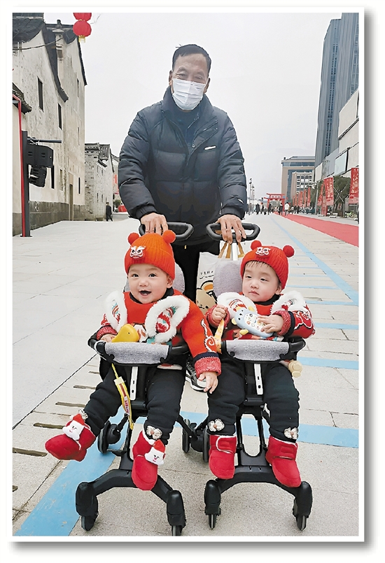 市民推着“遛娃神器”