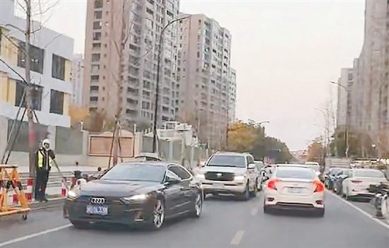 “本来一分钟就可以通过,结果堵了七八分钟!”12月18日早上8时左右,东城街道金山西路附近小区居民吕先生摇下车窗,指着前方排成长龙的车流无奈地说。当天,记者在高川花苑幼儿园天宸尚品园区门口看到,该路段双向两车道的路面被家长的接送车辆占了一半。大量私家车随意停靠非机动车道,几名家长下车领出孩子后,径直走向园区,身后的车流正不断鸣笛催促。