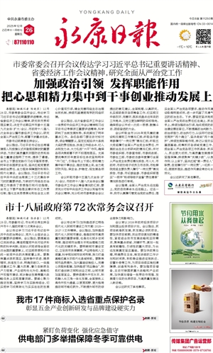 永康日报 要闻 00001 2025-12-26 1 2025年12月26日 星期五