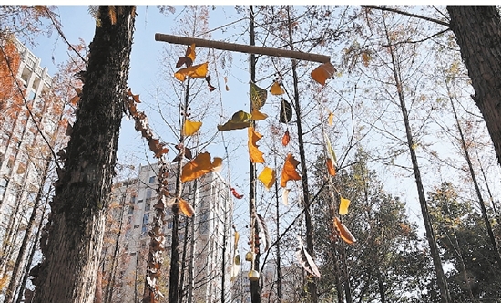 除了创意树洞画,香樟公园的一角还藏着不少惊喜。用落叶、树枝精心打造的落叶画框、风铃、小松鼠等秋冬氛围景观,错落有致地分布在园内,引得市民纷纷驻足观赏、拍照留念。