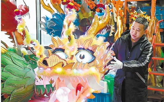 “春节前夕,我们龙灯和配套服装的订单量特别大。订单来自全国各地,现在基本上已经排满了。”九狮龙灯厂负责人李志曙介绍道,一条龙灯的制作工期取决于其大小和长短,一般需要半个月到一个月。