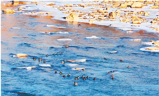 山西保德:流凌映翠羽 黄河迎鸭归