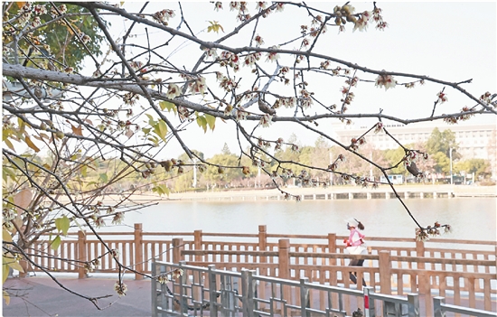 1月8日,记者在南溪江畔看到,游步道旁的腊梅已经悄然绽放,簇簇金黄缀满枝头,空气中弥漫着淡淡的芬芳,为冬日江岸增添了一抹暖意与生机。