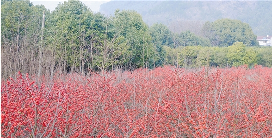1月12日,在位于前仓镇的永康市林场内,北美冬青进入最佳观赏期。连绵绿意中,缀满枝头的红果为冬日增添了一抹靓丽又喜庆的色彩。
