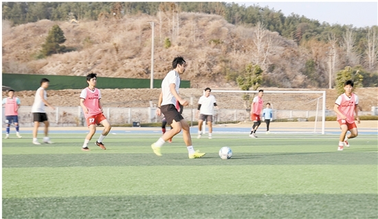 1月16日,市卫生学校足球场上,随着教练的指令,备战2026年金华市“八婺同心杯”足球超级联赛的永康队队员们灵活跑位、精准传球、快速完成攻防转换。目前,短时间内完成磨合、确定战术是这支队伍在备战阶段的首要任务。 融媒记者 程卓一 摄